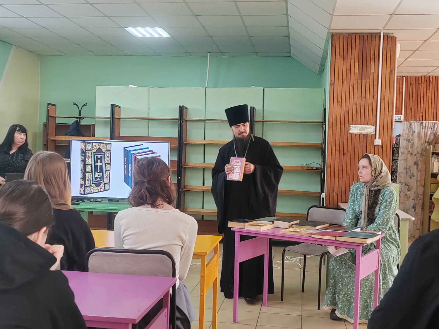 Одним из ярких моментов встречи стало знакомство учащихся с книгами на церковно-славянском языке. Священнослужитель показал ребятам несколько экземпляров, объясняя, как они используются в богослужении и каковы их особенности. Это вызвало живой интерес у школьников, многие из которых впервые увидели такие книги.