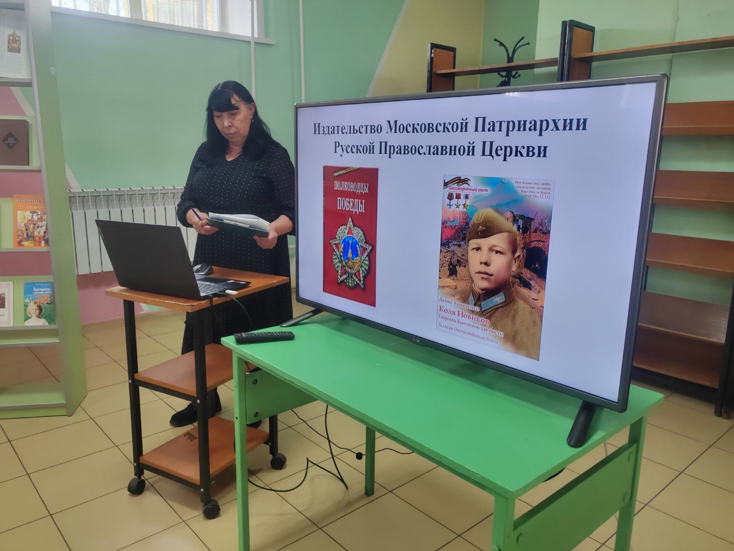 Встречу вела заведующая библиотекой Чистякова Ирина Владимировна, которая рассказала о библиотечном фонде православной литературы и о книгах Издательства Московской Патриархии.